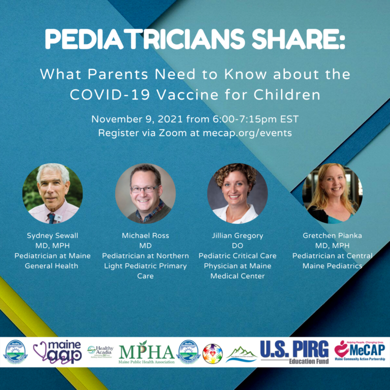 The CDC has recently recommended 5 to 11 year old children receive the COVID-19 vaccine, offering a way for parents to protect their children and families from COVID-19 infection. Join us for a forum featuring Maine pediatricians as they share information about children and the COVID-19 vaccine and give advice on what to consider when making the decision to vaccinate children against COVID-19. There will be time for questions from the audience.